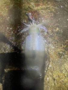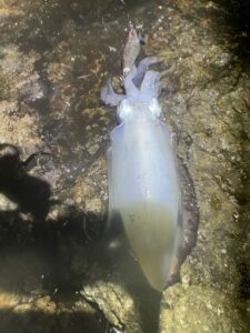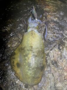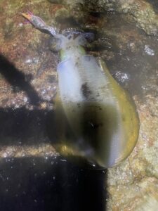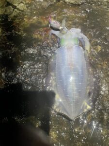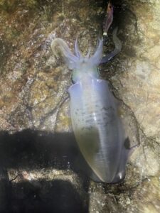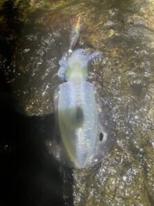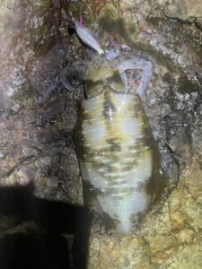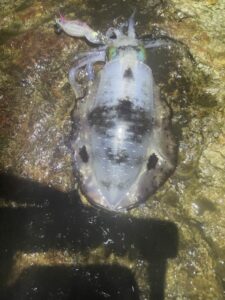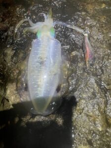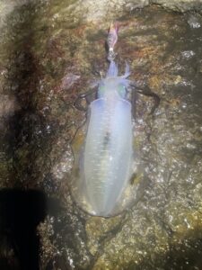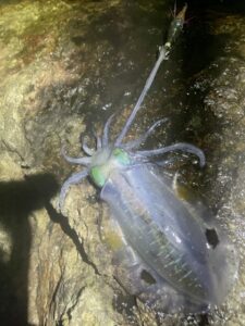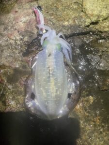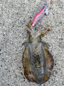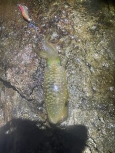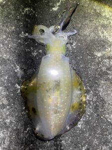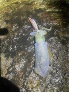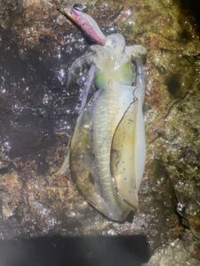 姿は良く見えませんでしたが、明らかにイカに魚が噛みついて頭フリフリしてましたw