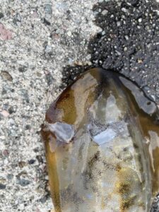 その後、直ぐに明るくなり、同時に風向きがあまりに悪く波消しブロックにラインが引っ掛かりそうになるため堤防内を場所移動。