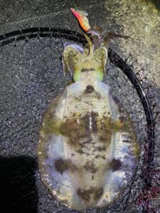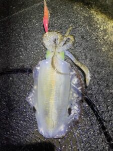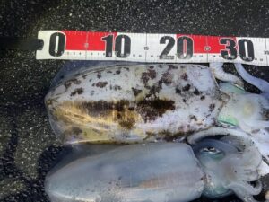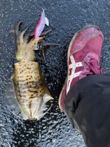 イカを袋に戻し後始末しながらしゃくっていると足元付近で更に追加のヒット。
