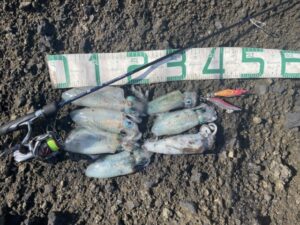 元々エギングを教えており、爆釣を経験したことが無いとの事だったので、お勧めのポイントへ連れて行き爆釣させたい。