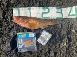 キジハタはイマイチのサイズではありますがアジングロッドでのファイトなのでスリリングで楽しい!