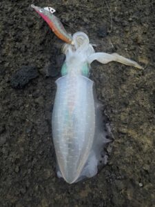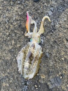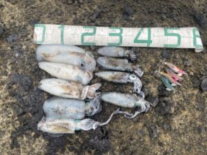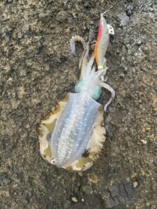 途中、魚のアタリもあったのでワームで遊んでみますがヒット無くエギングに戻り、忘れた頃にポツリポツリ・・・・