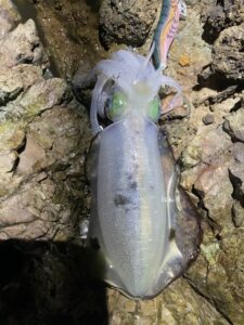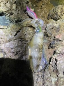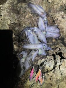 まぁまぁ調子良かったのですが、次のキャストしたままイカ絞めたり袋に入れたりしていたら根掛かり・・・