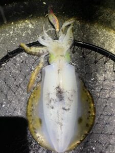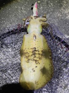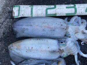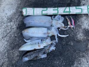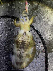 開始しますが全然当たりなく、かなり時間がたってからやはり波でエギが操りにくいなぁとアゴリグシンカーを取付けた途端ヒット。